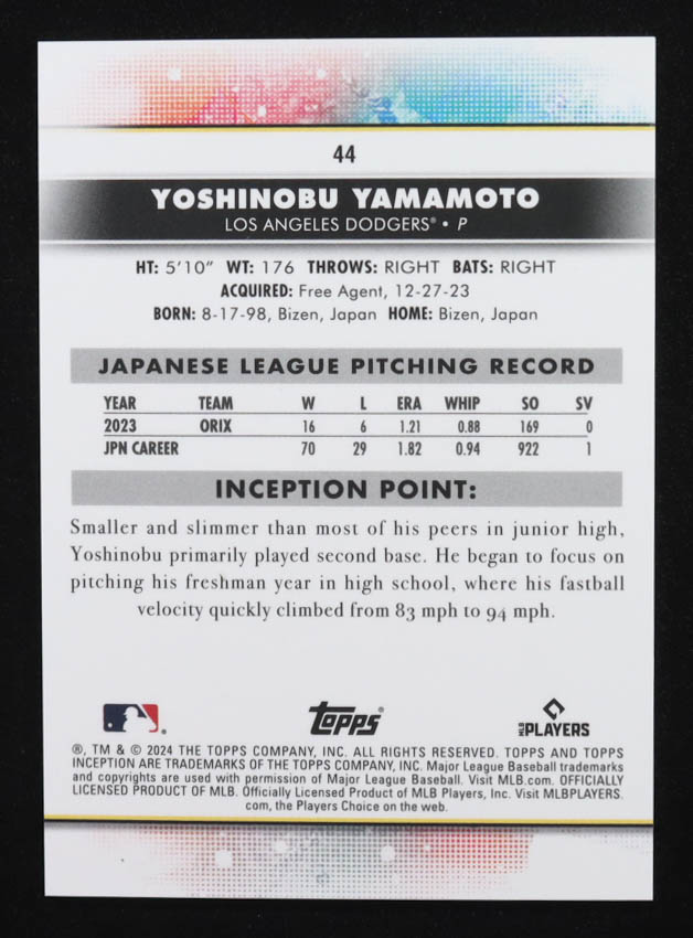 Yoshinobu Yamamoto 2024 Topps Inception Green #44 RC