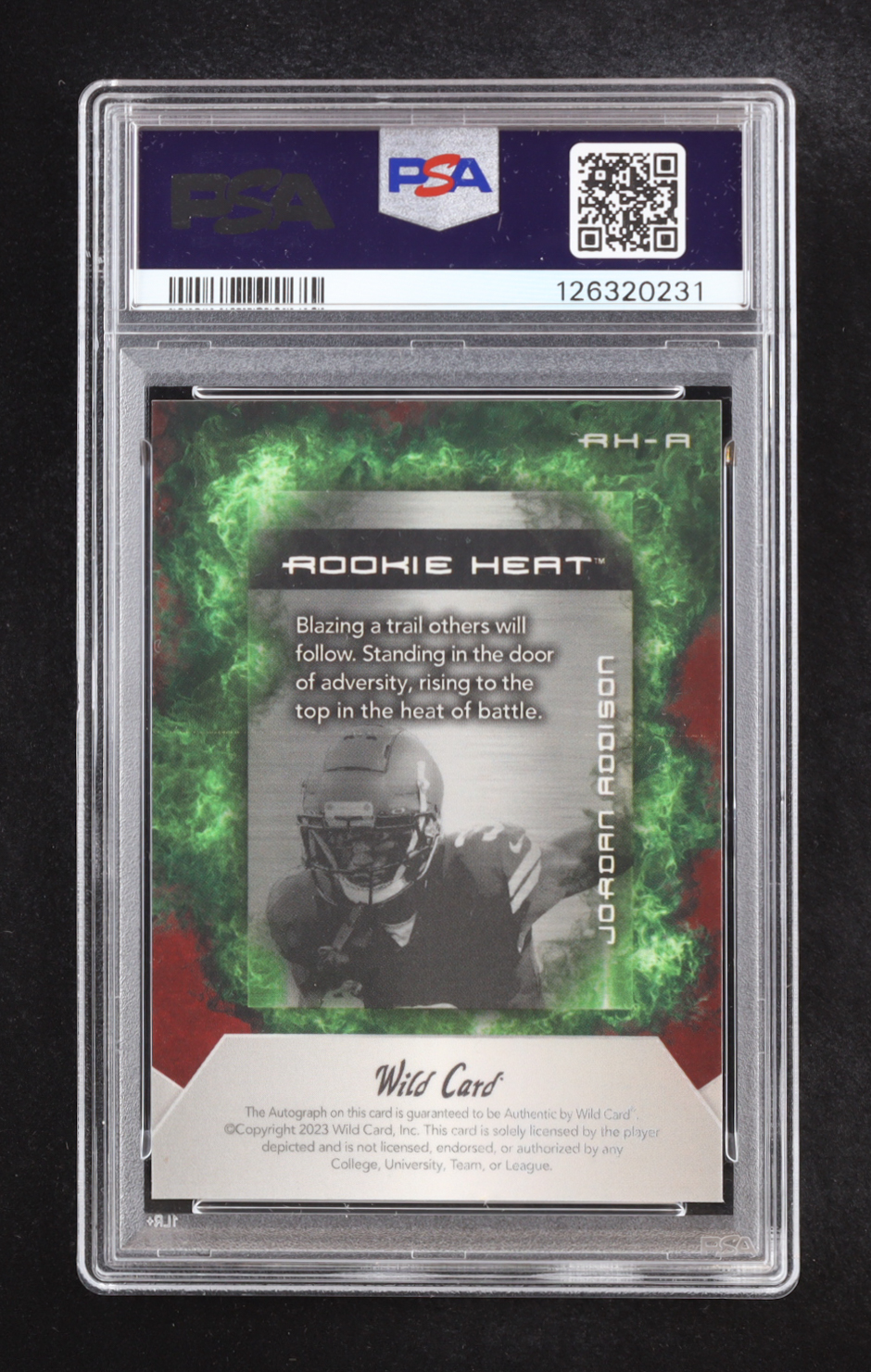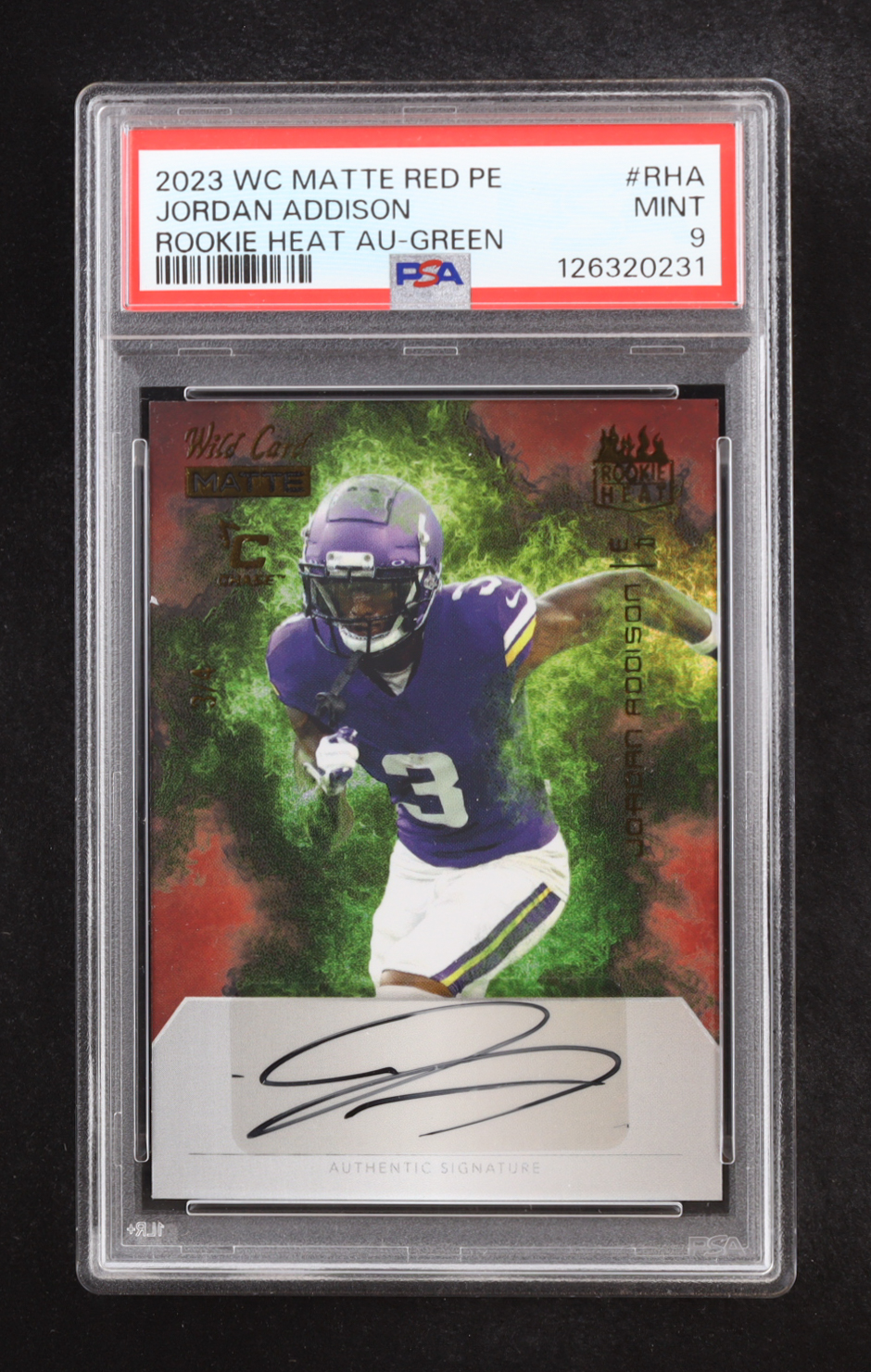 Jordan Addison 2023 Wild Card Matte Red Rookie Heat Green Autographs #RHA RC #3/4 (PSA 9)