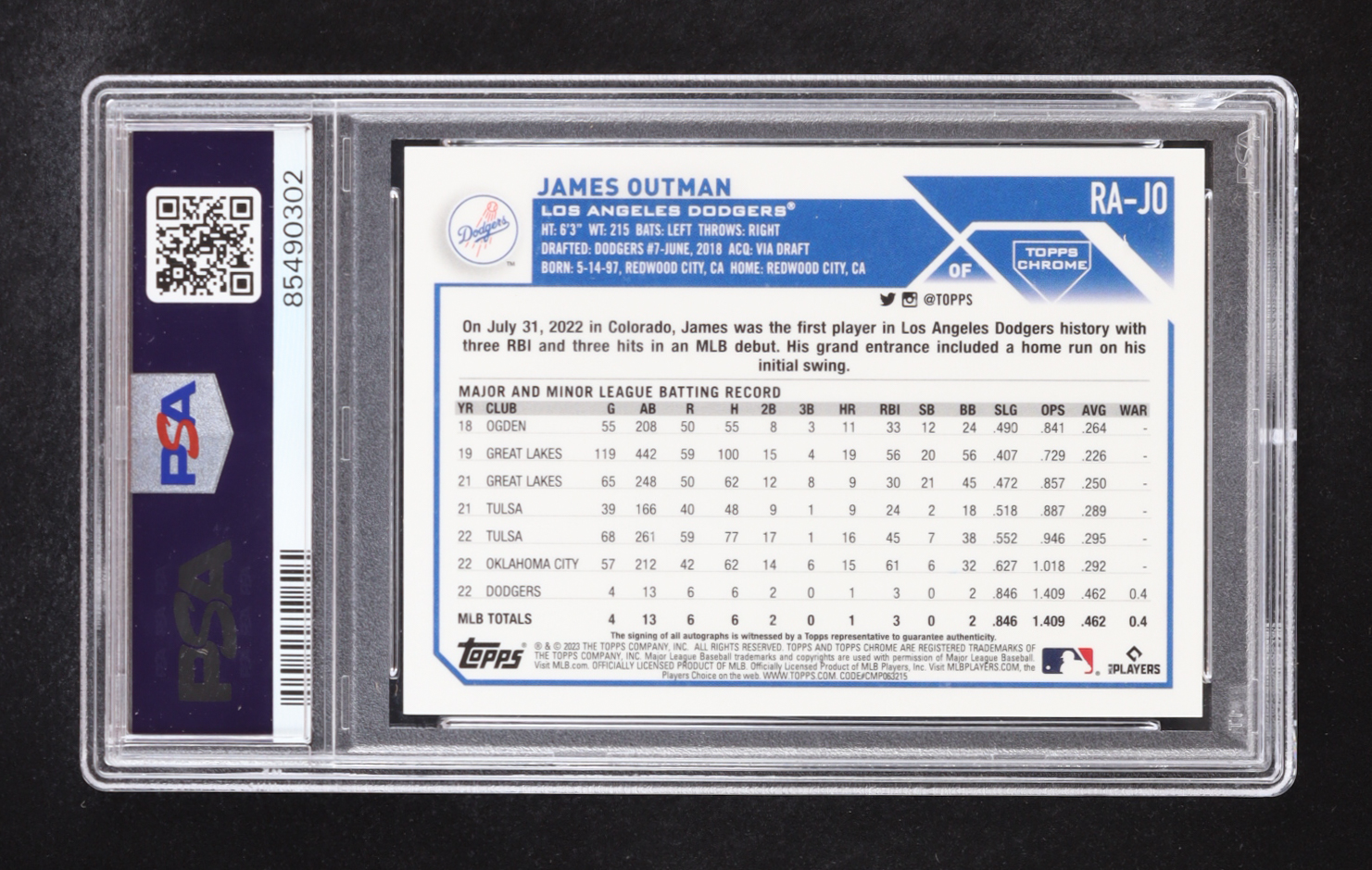 James Outman 2023 Topps Chrome Rookie Autographs #RAJO RC (PSA 10)