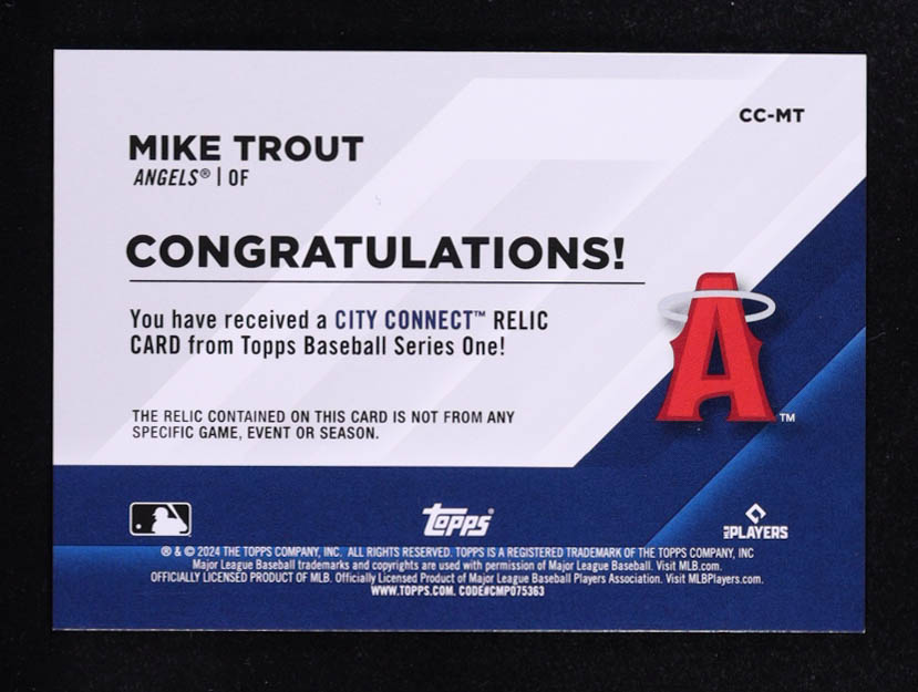 Mike Trout 2024 Topps City Connection Swatch Collection Black #CCMT #087/199