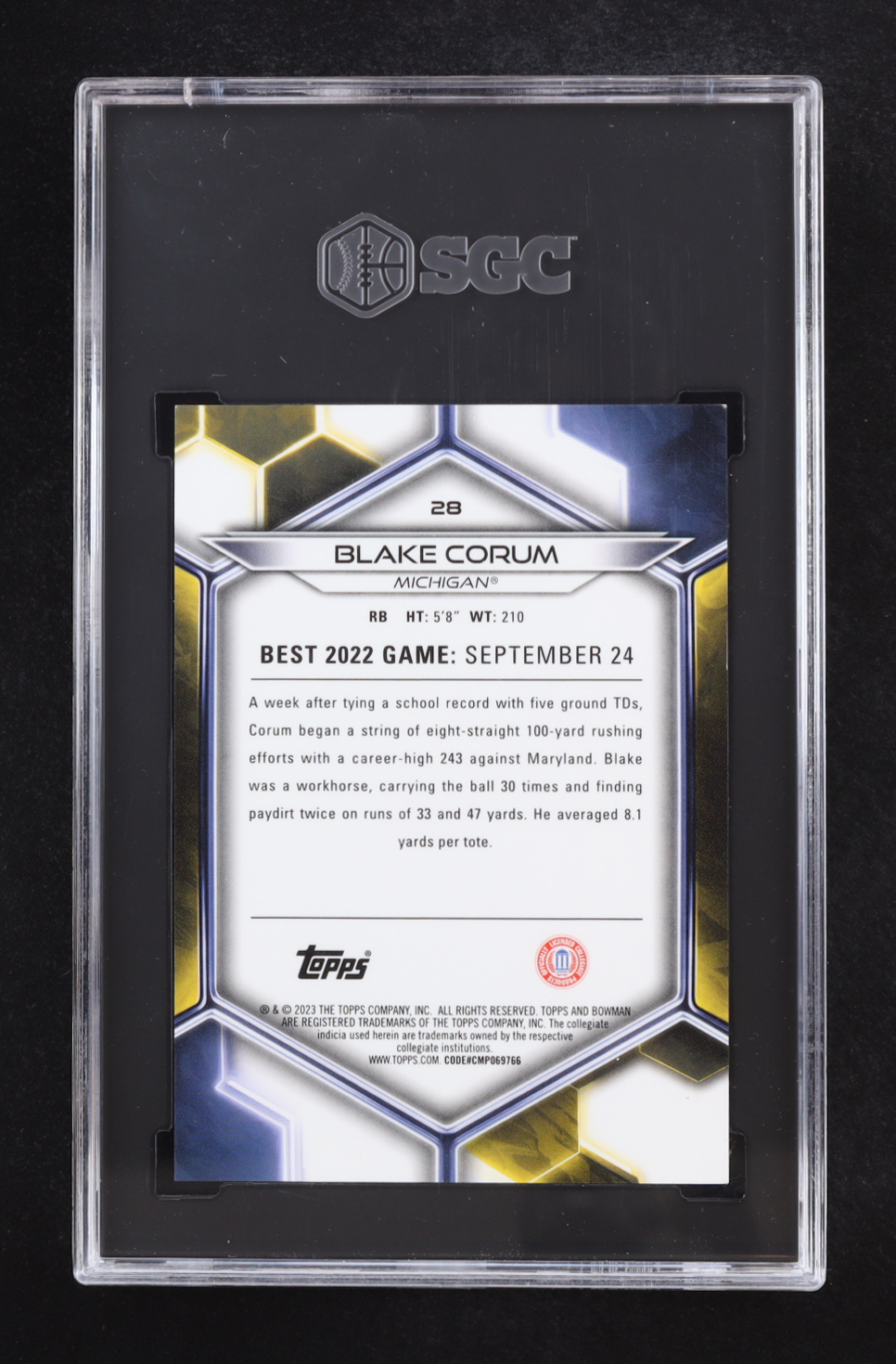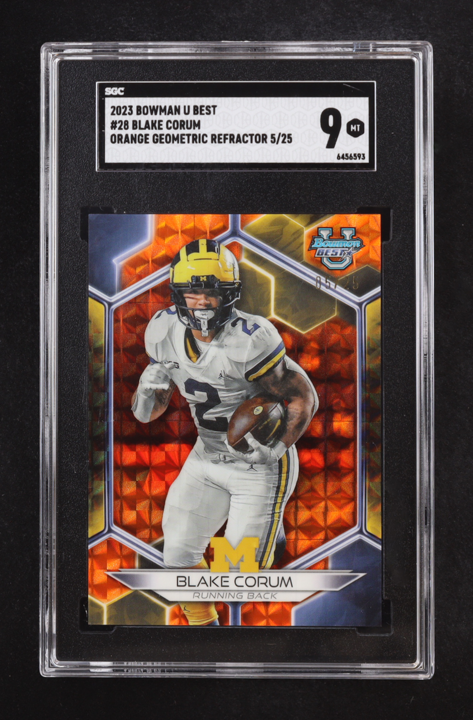 Blake Corum 2023 Bowman U Best Orange Geometric Refractor #28 RC #05/25 (SGC 9)