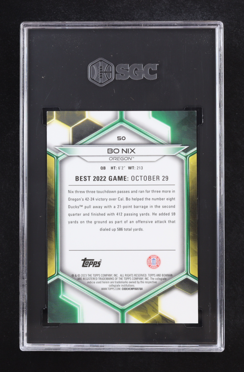 Bo Nix 2023 Bowman U Best Blue Refractor #50 RC #24/150 (SGC 9)