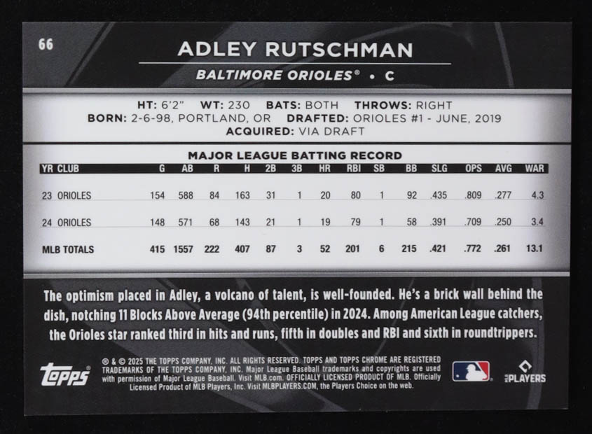 Adley Rutschman 2025 Topps Chrome Black Purple Refractors #66 #26/75