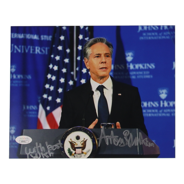 Photo measures 8" x 10" in size and has been hand-signed by Antony Blinken.