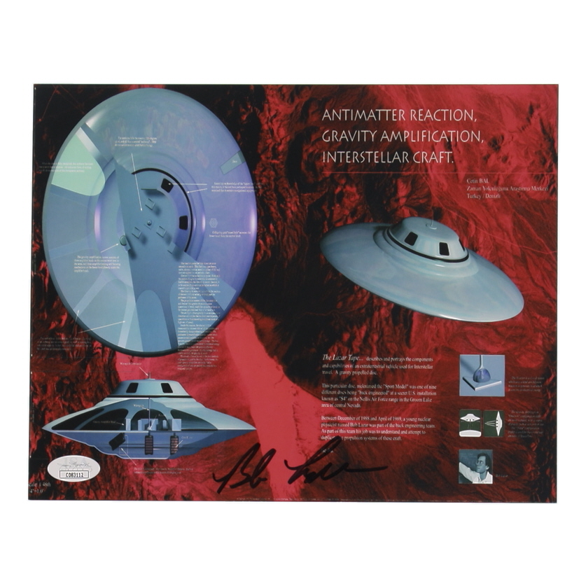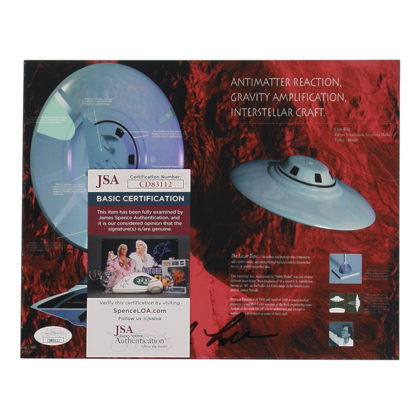 Photo measures 8" x 10" in size and has been hand-signed by Bob Lazar.