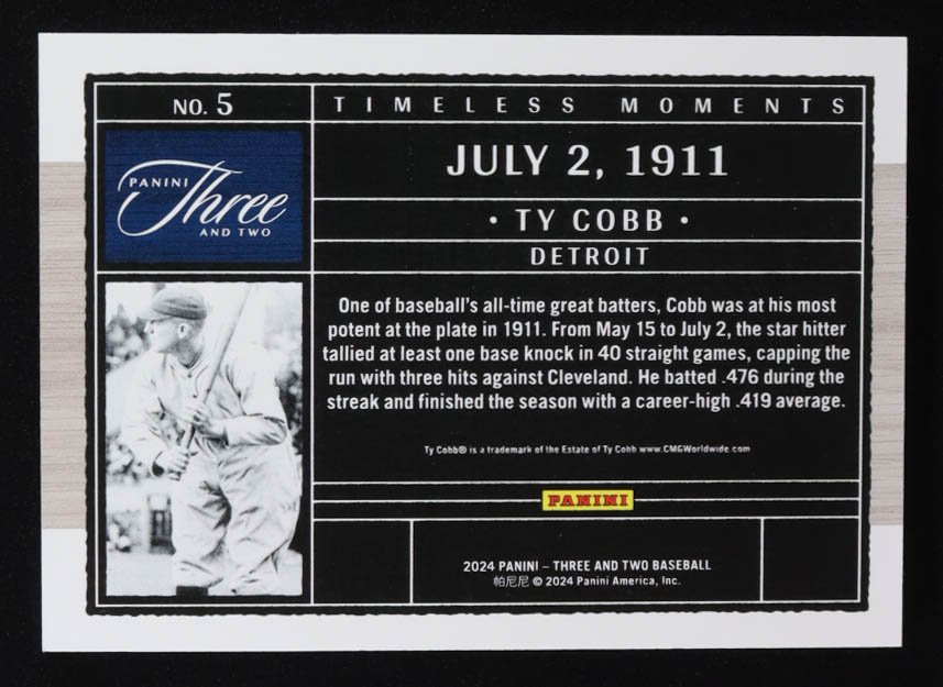 Ty Cobb 2024 Panini Three and Two Timeless Moments Holo Gold #5 #02/10