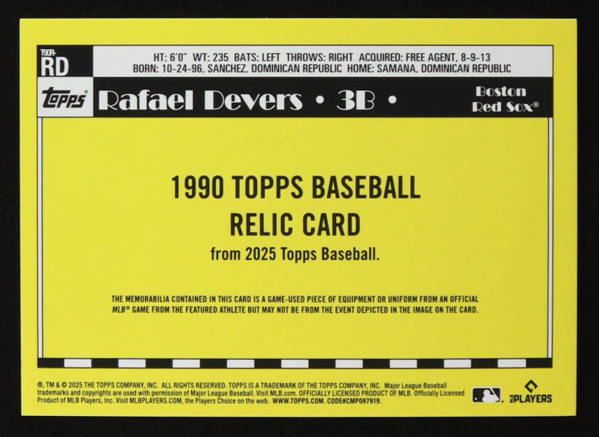 Rafael Devers 2025 Topps '90 Topps Relics #T90RRD
