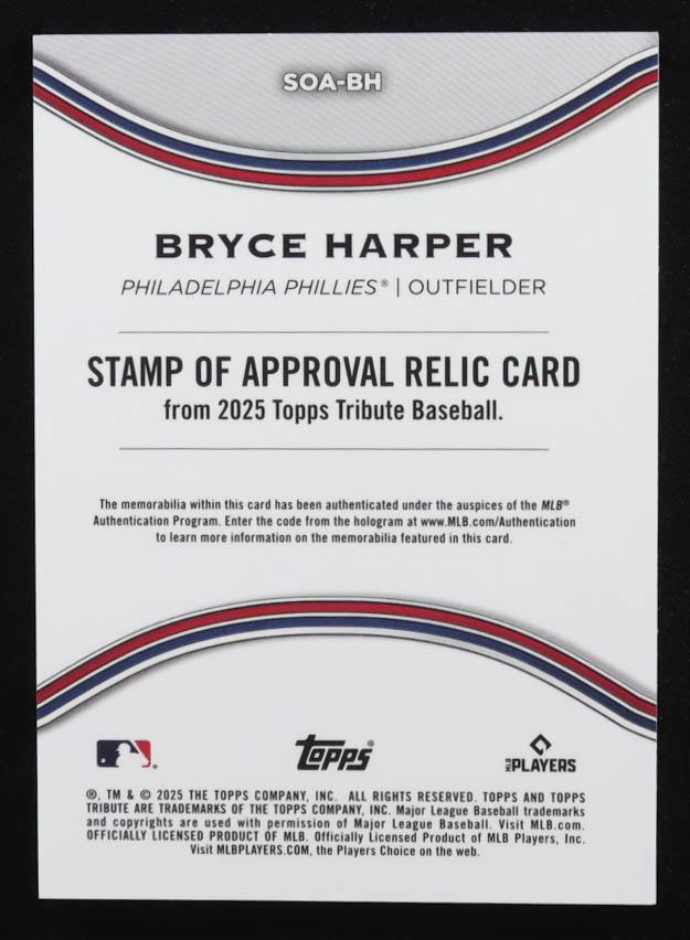 Bryce Harper 2025 Topps Tribute Stamp of Approval Relics #SOABH #171/199