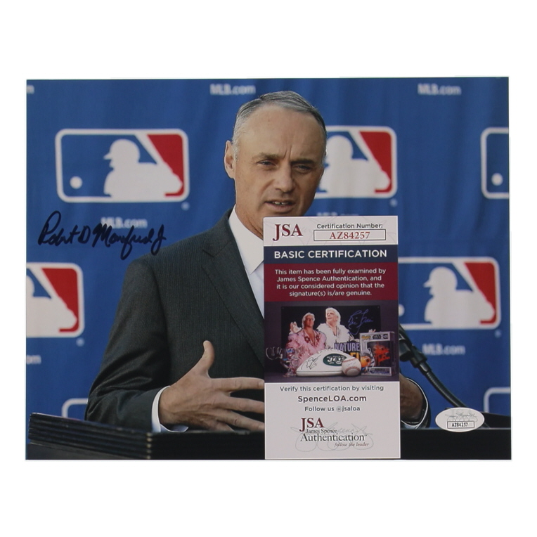 Photo measures 8" x 10" in size and has been hand-signed by Rob Manfred.