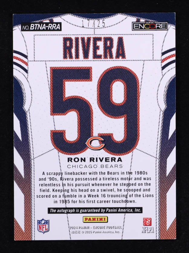 Ron Rivera 2024 Panini Encore By the Numbers Autographs Blue #9 #17/25