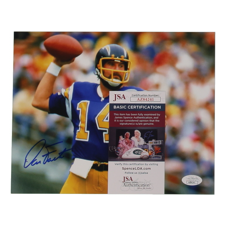 Photo measures 8" x 10" in size and has been hand-signed by Dan Fouts (Los Angeles Chargers).