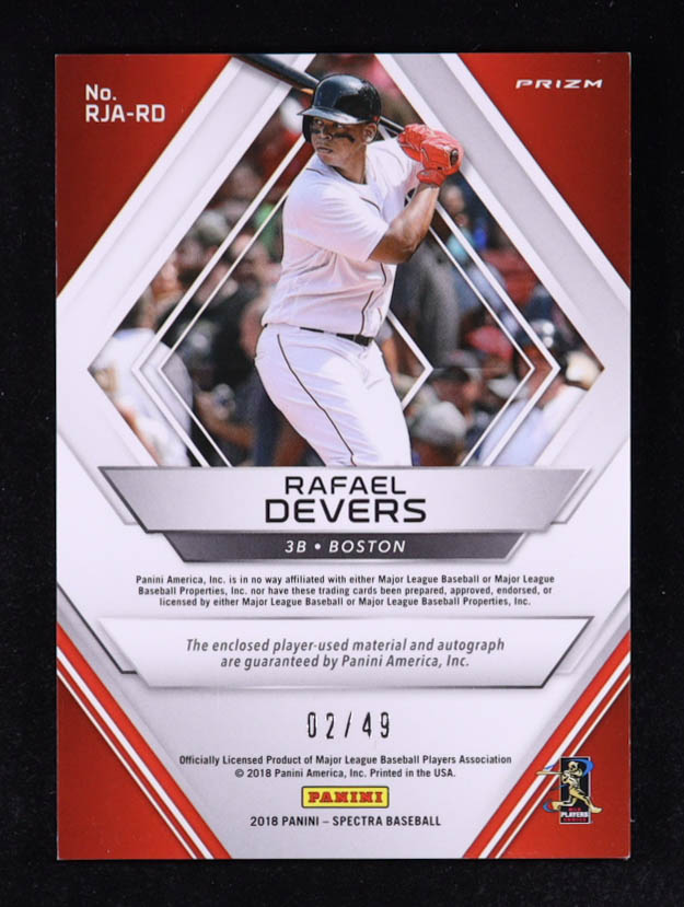 Rafael Devers 2018 Panini Spectra Rookie Jersey Autographs Neon Pink #RJARD #02/49 RC