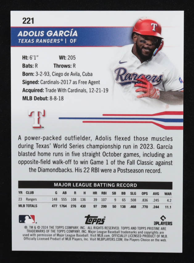 Adolis Garcia 2024 Topps Pristine Blue Pristine Refractors #221 #72/75