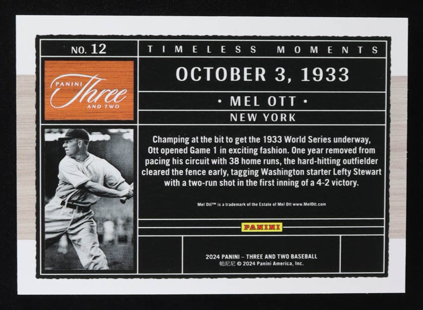 Mel Ott 2024 Panini Three and Two Timeless Moments #12 #86/99