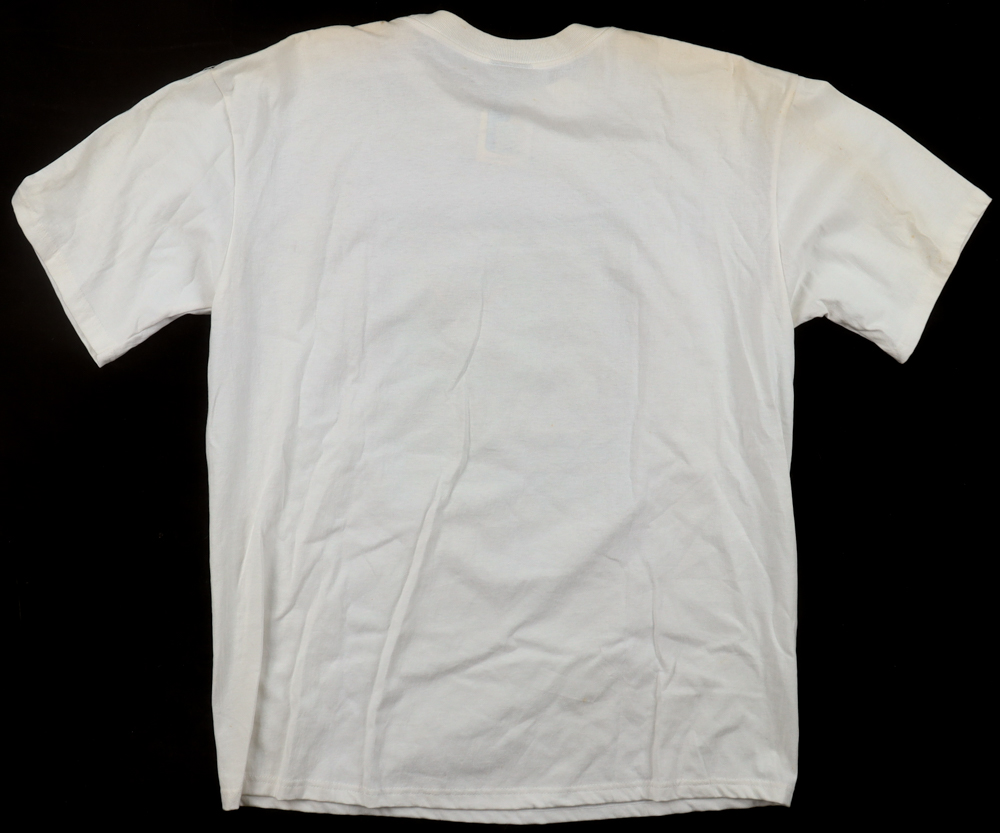 2003 Stanley Cup Playoffs Anaheim Ducks T-shirt with everything printed on, size XL. T-Shirt has been hand-signed by Jean-Sebastien Giguere (Mighty Ducks). Please note, there is staining throughout the t-shirt.
