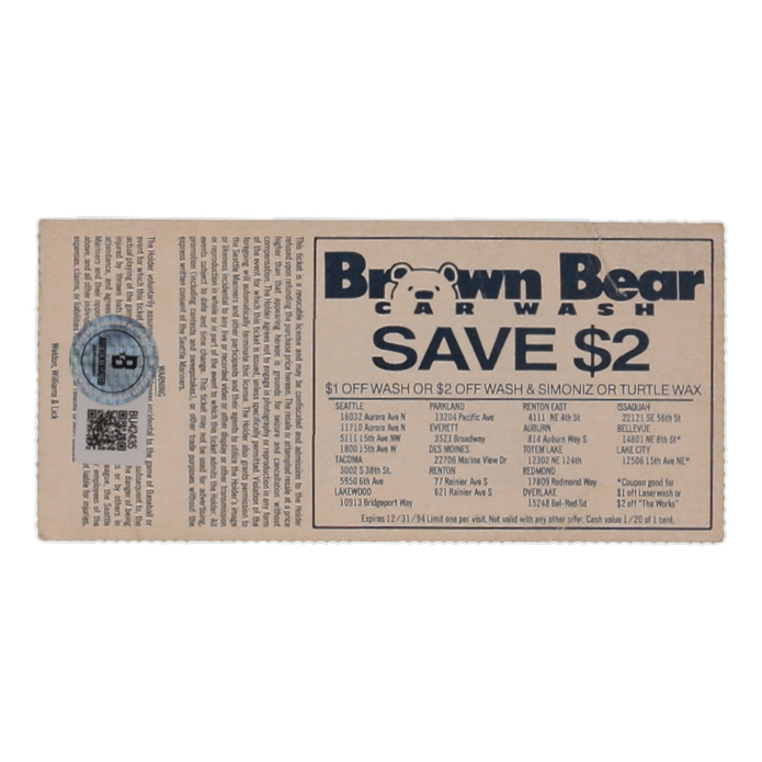 Ken Griffey Jr. Signed 1994 Mariners vs. Athletics Game Ticket (Beckett)