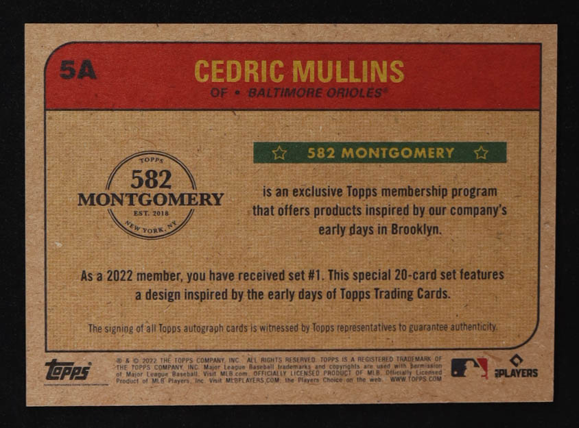 Cedric Mullins 2022 Topps 582 Montgomery Club Lost Design Set 1 Autographs #5A