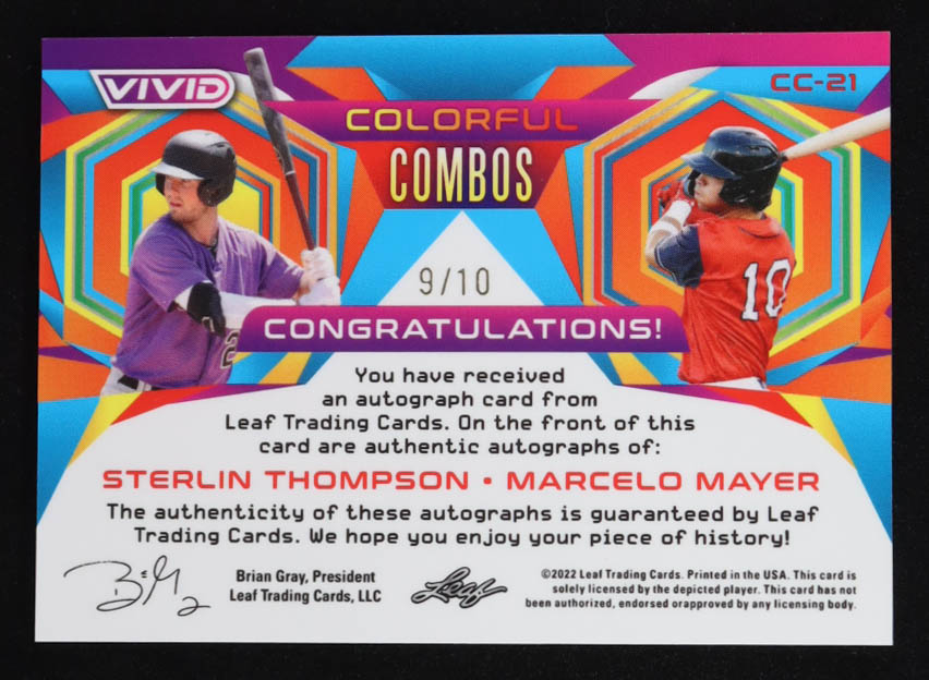 Sterlin Thompson / Marcelo Mayer 2022 Leaf Vivid Colorful Combos Orange #CC21 #09/10 RC