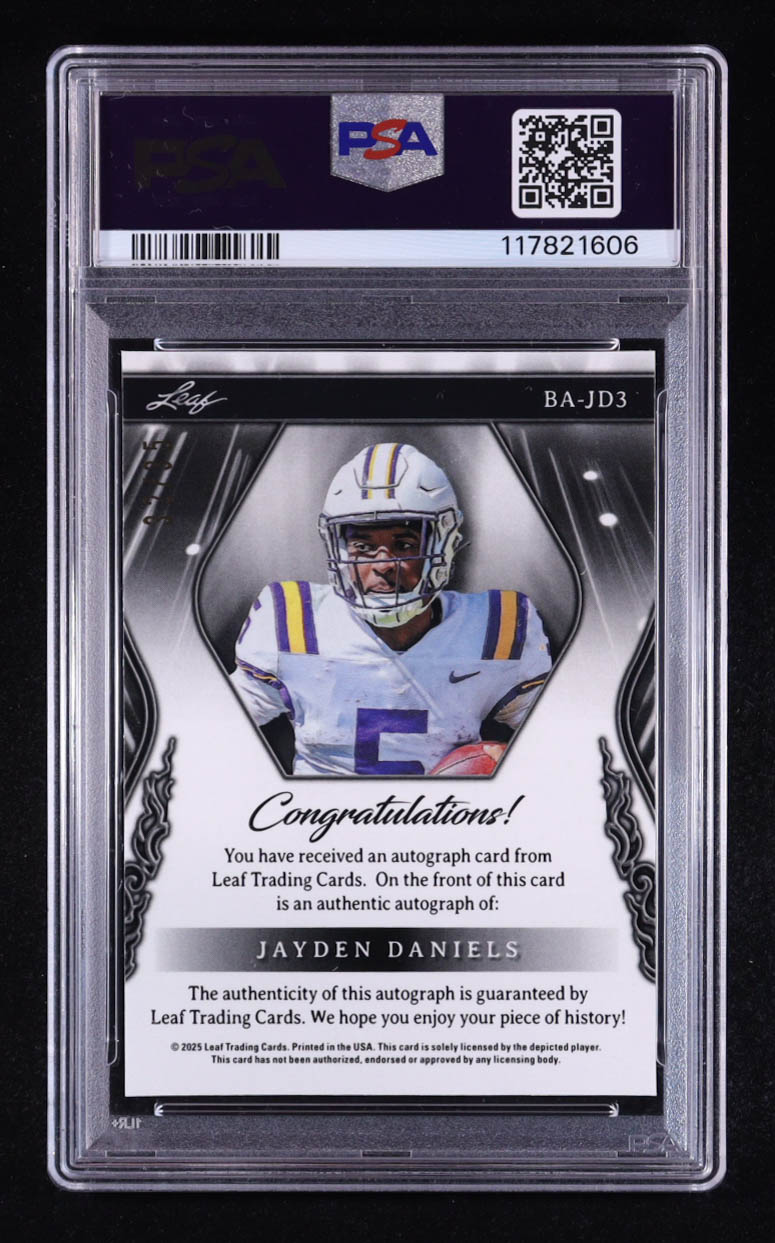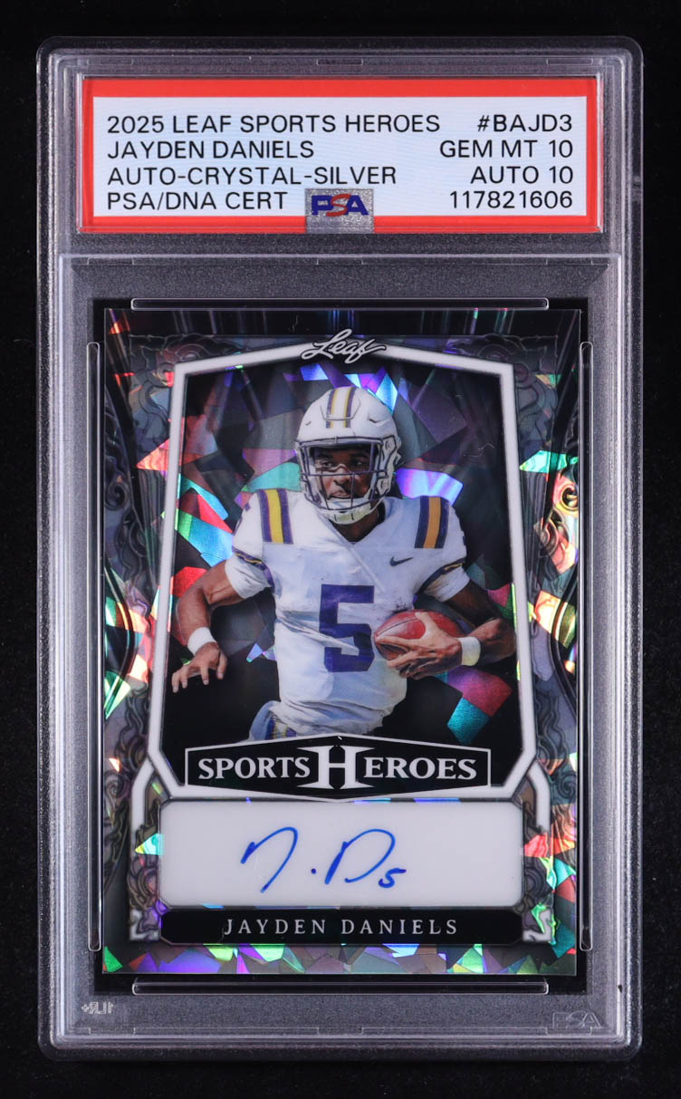 Jayden Daniels 2025 Leaf Sports Heroes Autographs Silver Crystal #BAJD3 #32/35 (PSA 10 | Auto 10)