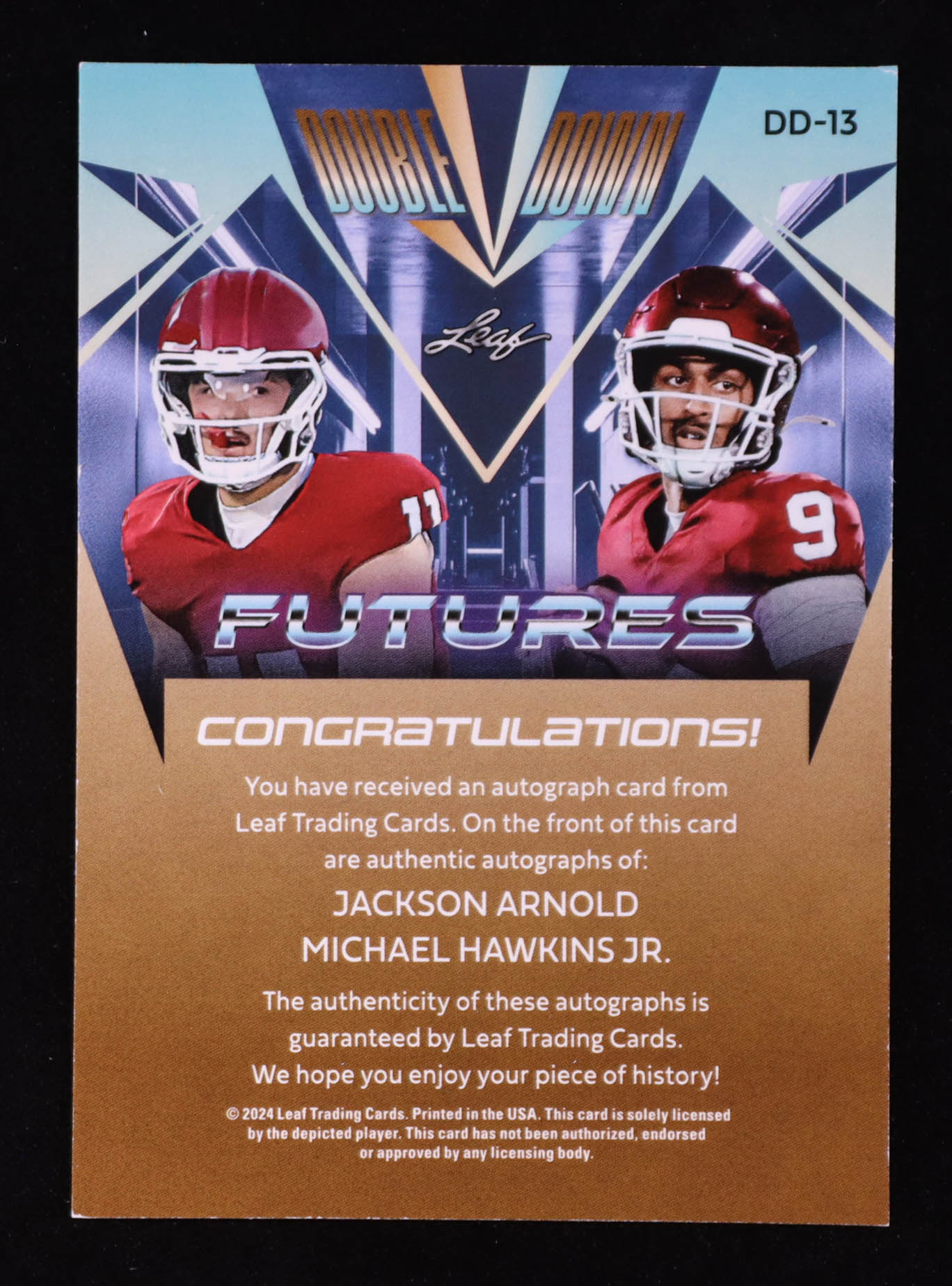 Jackson Arnold/Michael Hawkins Jr. 2024 Leaf Futures Autographs Double Down #DD-13 RC #17/25