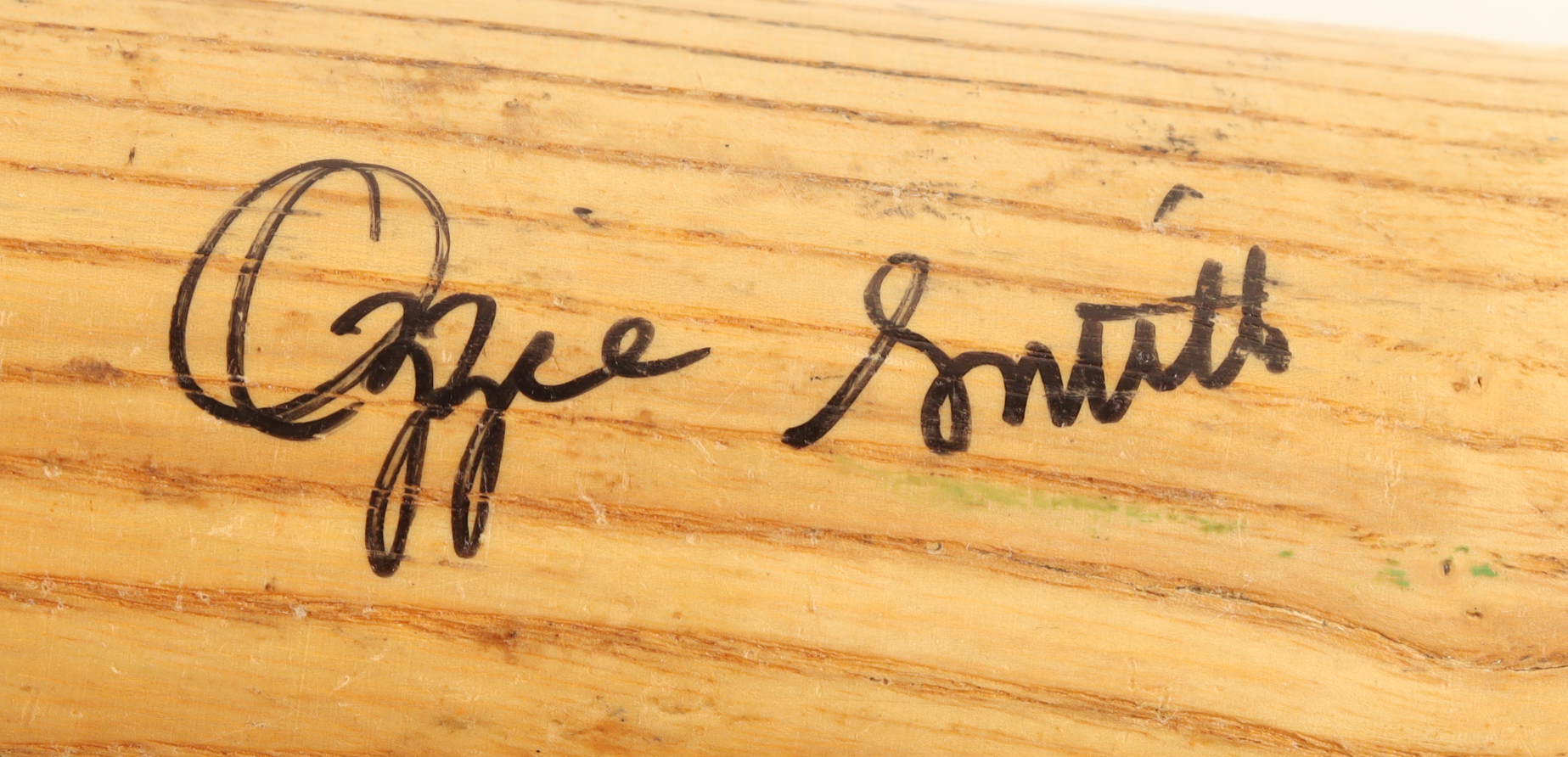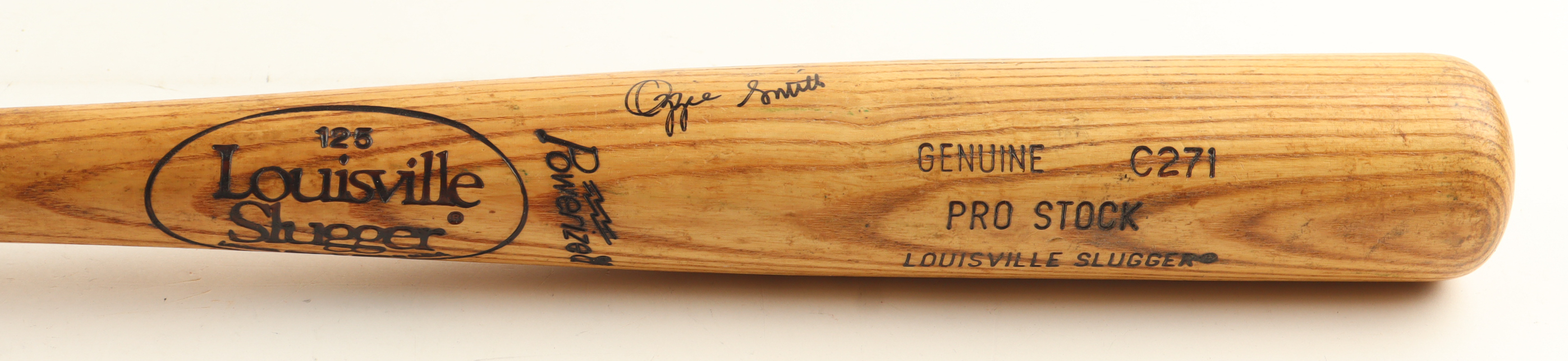 Louisville Slugger baseball bat. Hand-signed by Ozzie Smith (St. Louis Cardinals, HOF). Please note that the bat shows signs of natural wear.