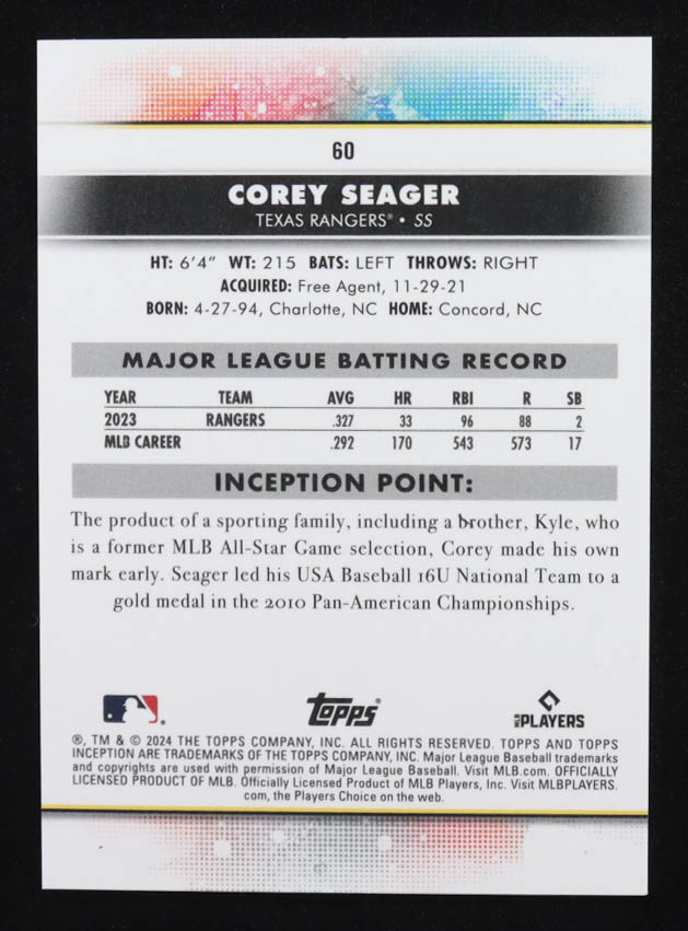 Corey Seager 2024 Topps Inception Yellow #60 #169/199