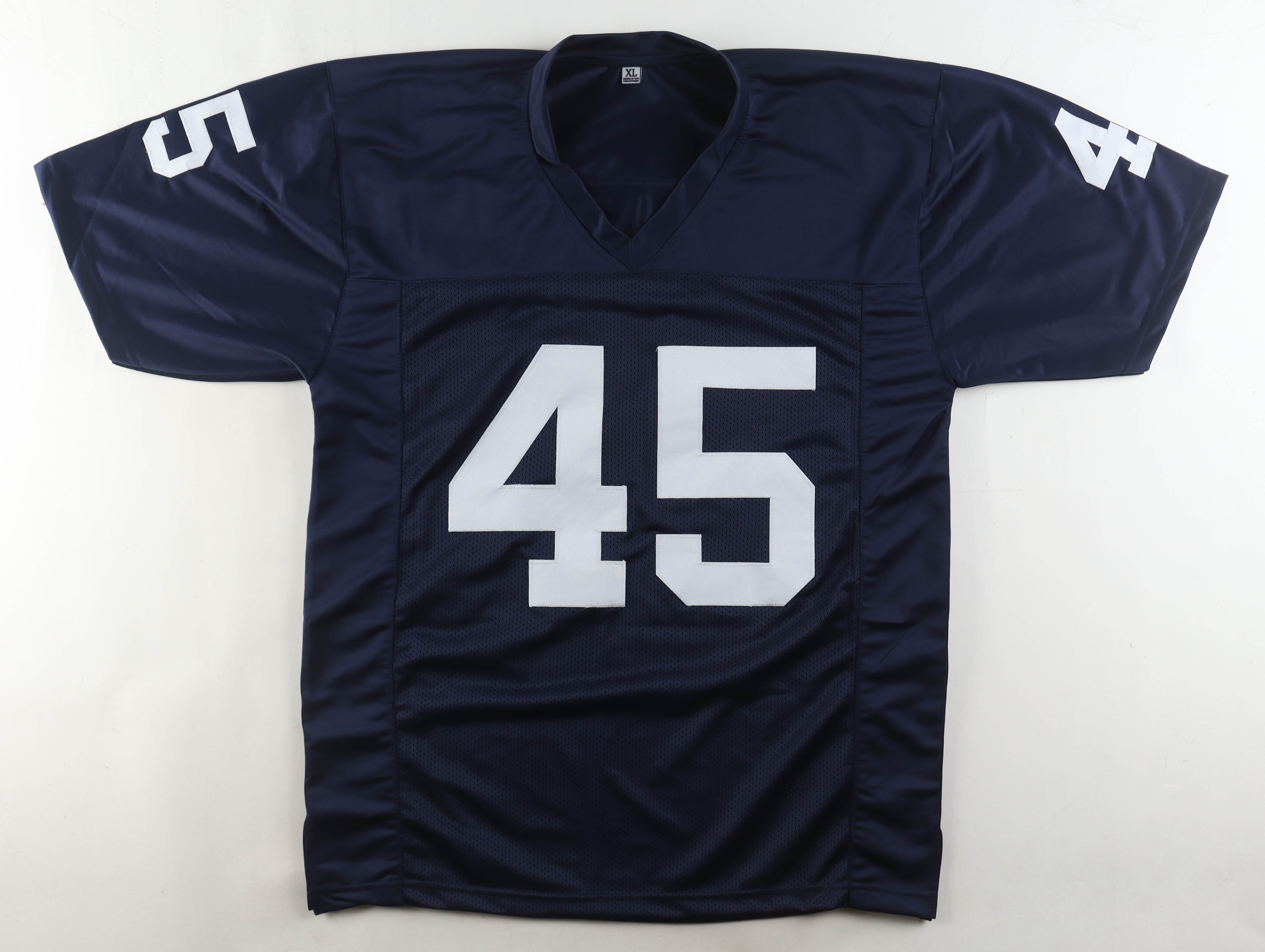 Custom jersey with everything sewn on, size XL. Hand-signed by Rudy Ruettiger.