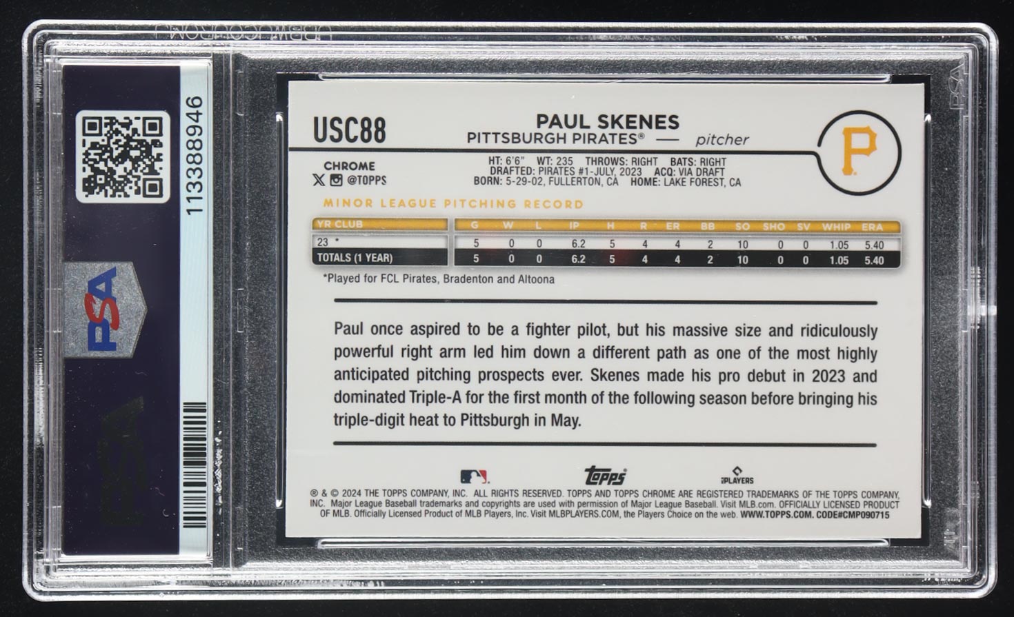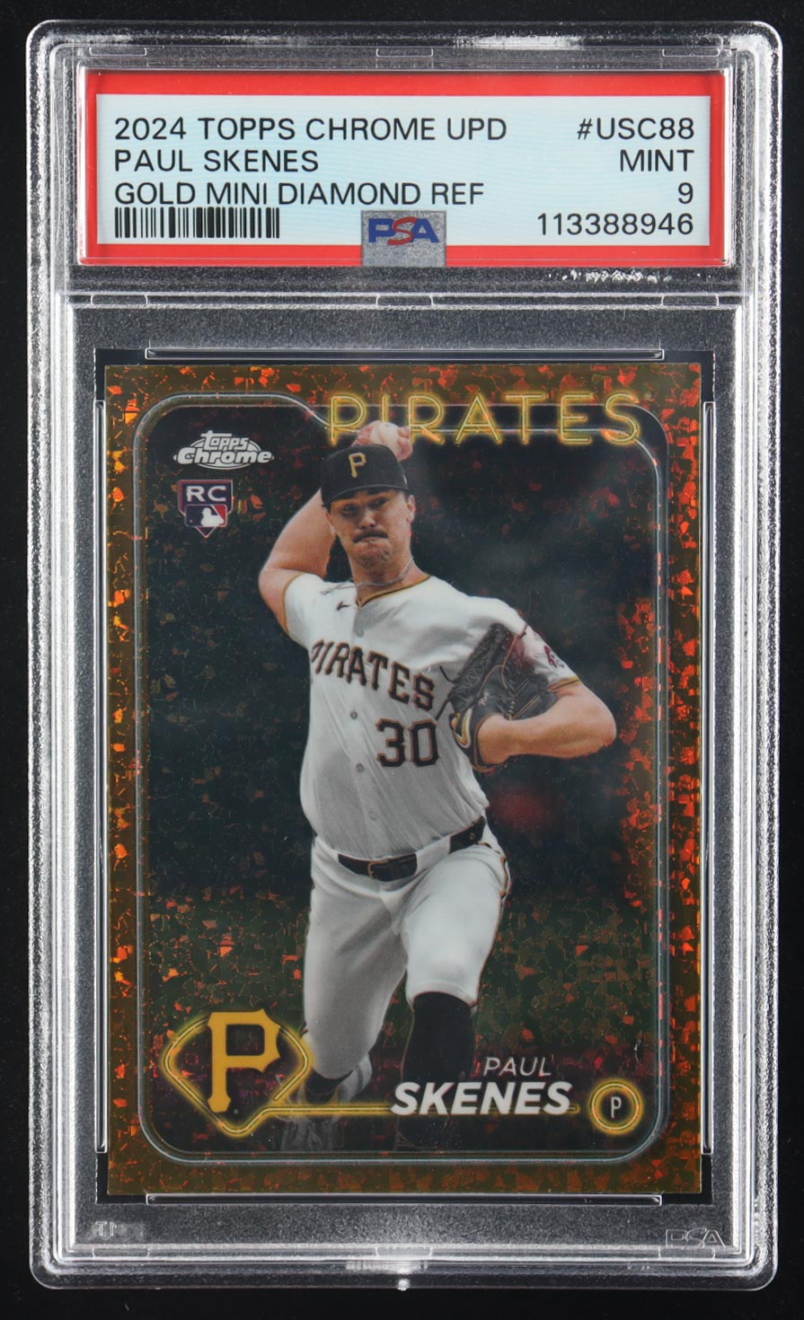 Paul Skenes 2024 Topps Chrome Update Gold Mini-Diamond Refractors #USC88 RC #12/50 (PSA 9)