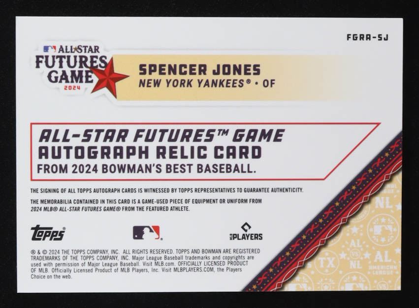 Spencer Jones 2024 Bowman's Best '24 MLB All-Star Futures Game Autograph Relics Blue Refractors #FGRASJ #128/150 RC
