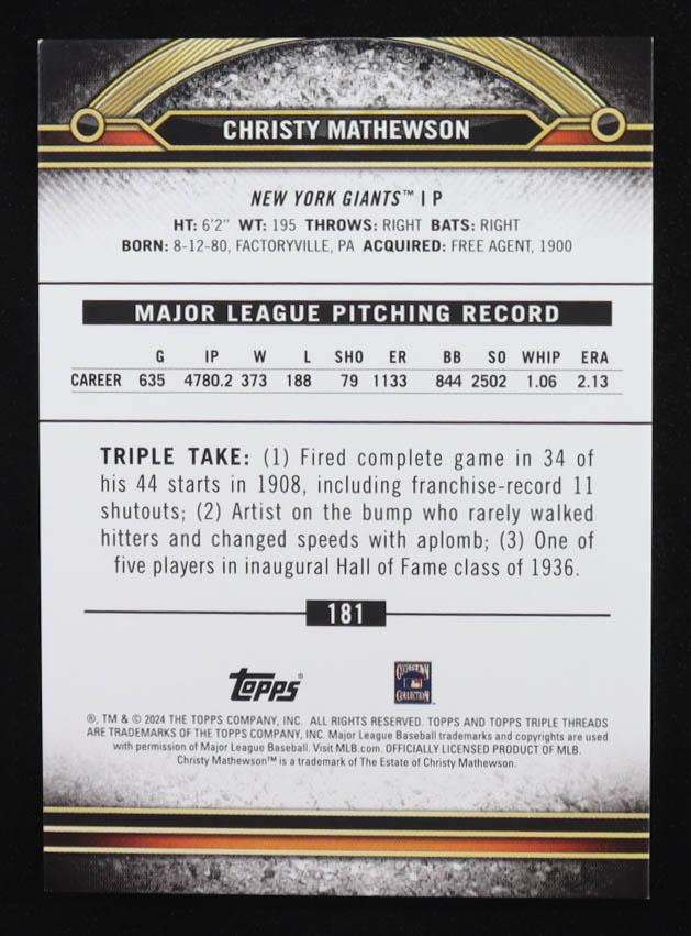 Christy Mathewson 2024 Topps Triple Threads Aquamarine #181 #143/149