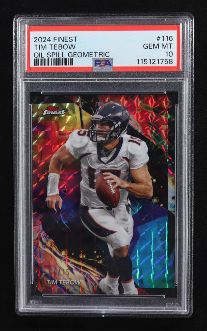 Tim Tebow 2024 Finest Oil Spill Geometric Refractors #116 #04/15 (PSA 10)