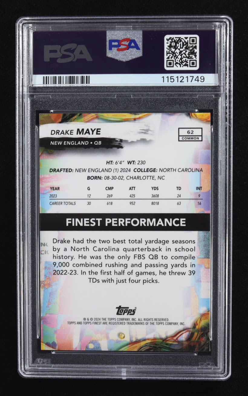 Drake Maye 2024 Finest Blue Refractors #62 #112/200 RC (PSA 10)