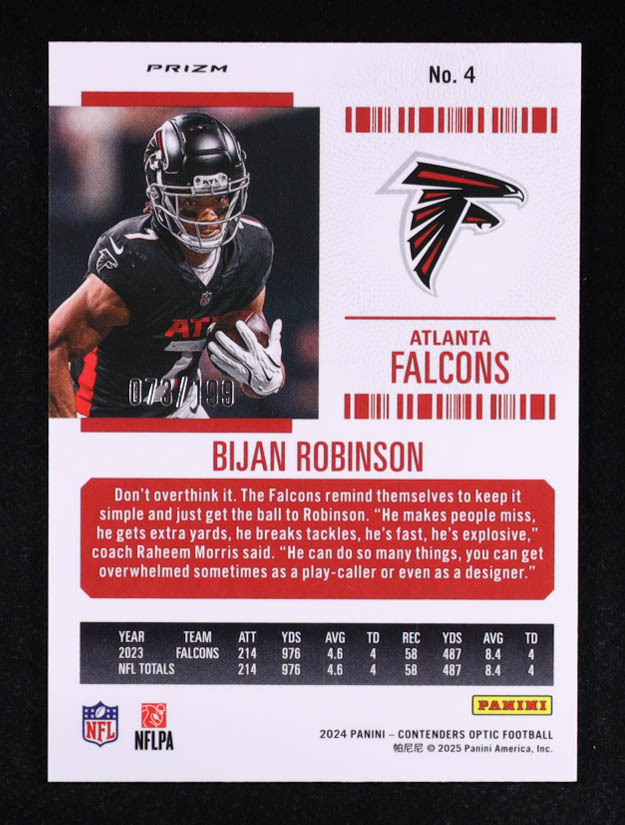 Bijan Robinson 2024 Panini Contenders Optic Season Ticket #4 #073/199
