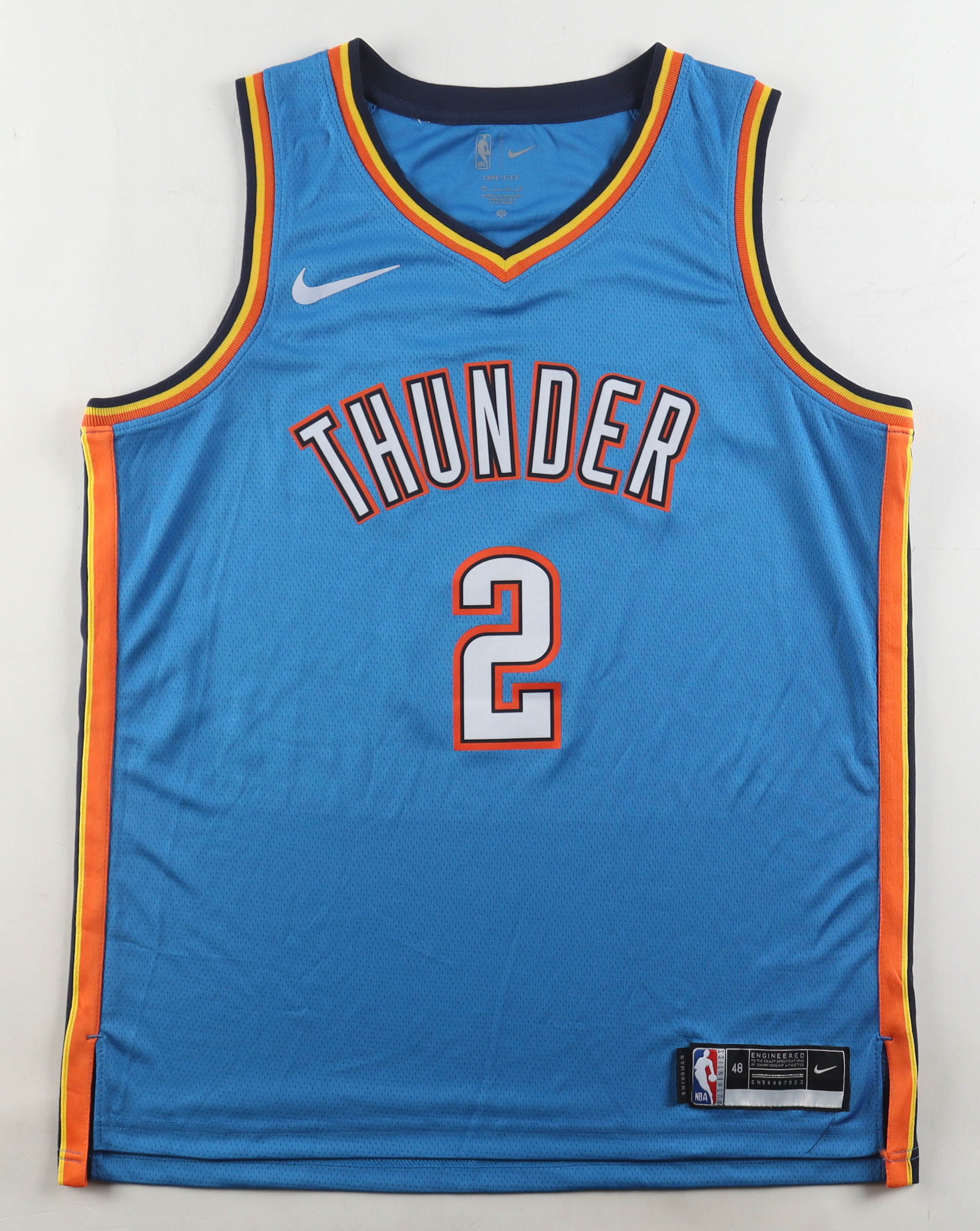 Nike authentic jersey with everything pressed on, size 48. Hand-signed by Shai Gilgeous-Alexander (Oklahoma City Thunder).