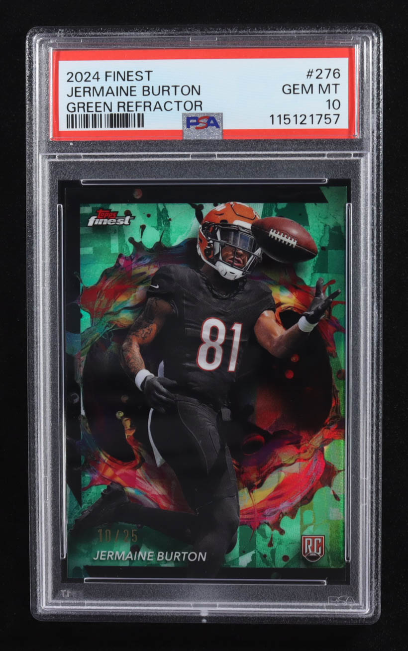 Jermaine Burton 2024 Finest Green Refractors #276 #10/25 RC (PSA 10)