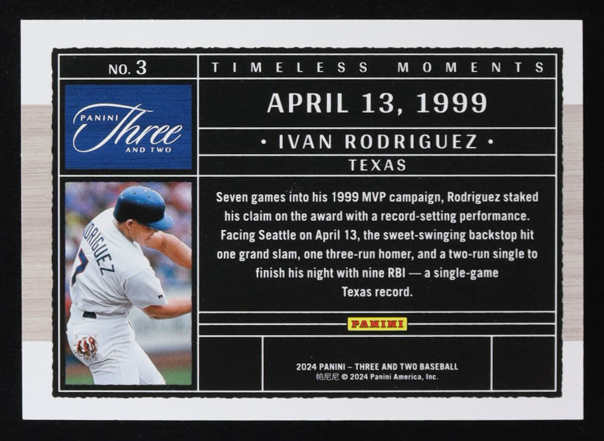 Ivan Rodriguez 2024 Panini Three and Two Timeless Moments Holo Gold #3 #08/10