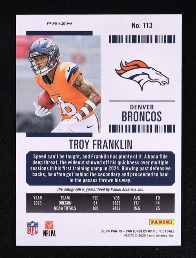 Troy Franklin 2024 Panini Contenders Optic Prizm Rookie Ticket Autographs #113 RC