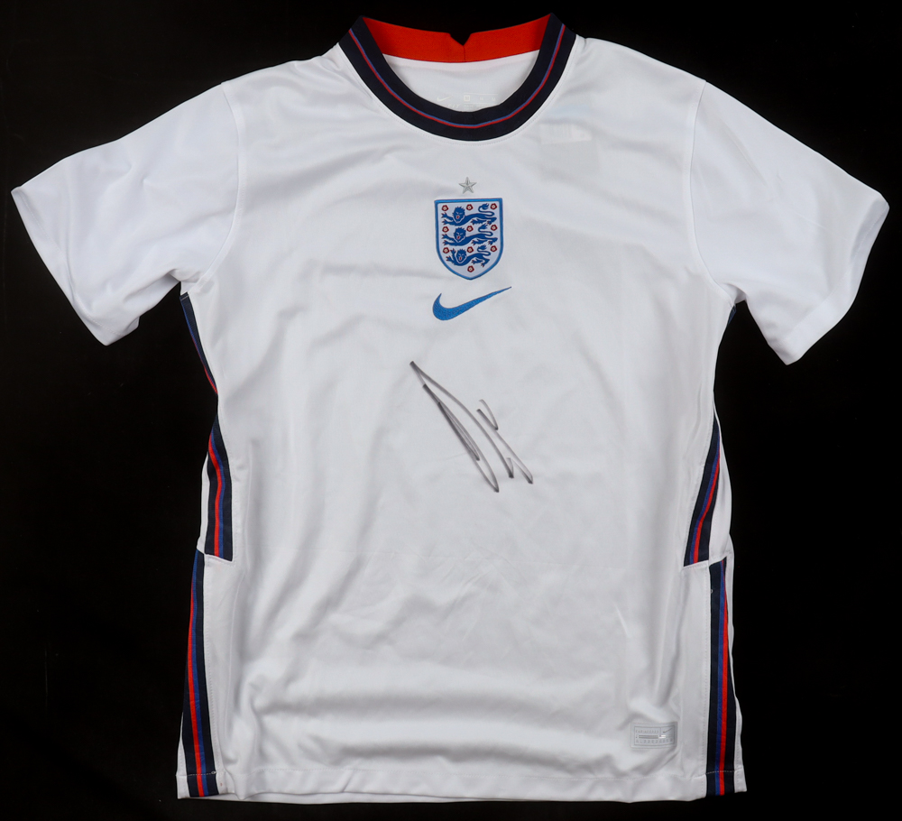Nike authentic jersey with everything sewn on, size M. Hand-signed by Luke Shaw.