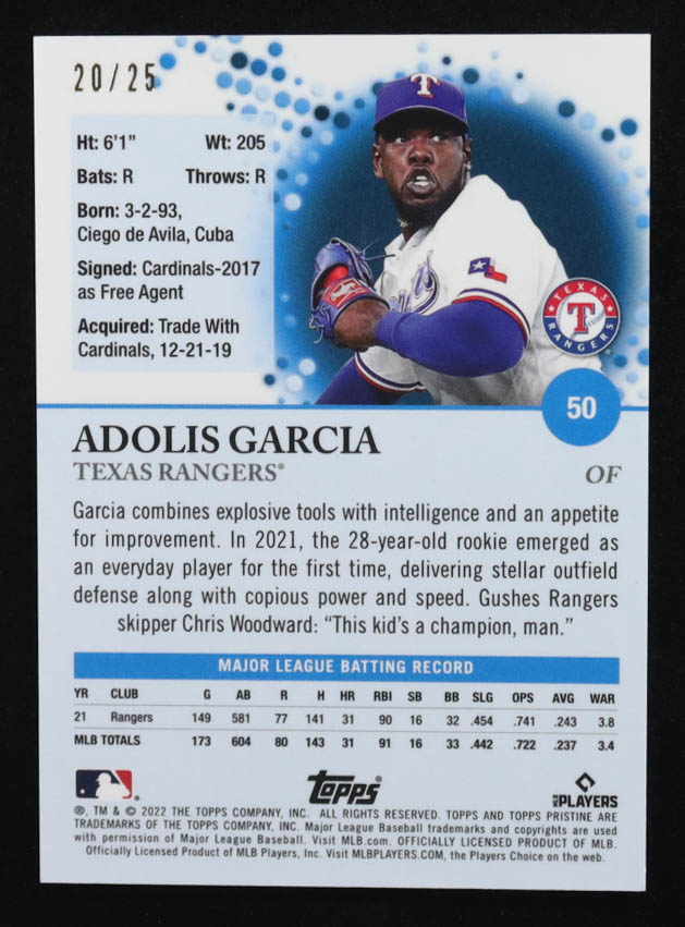 Adolis Garcia 2022 Topps Pristine Orange Pristine Refractors #50 #20/25
