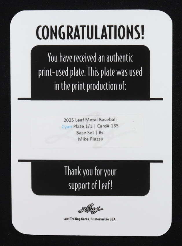 Mike Piazza 2025 Leaf Metal Cyan Printing Plate #135 #1/1