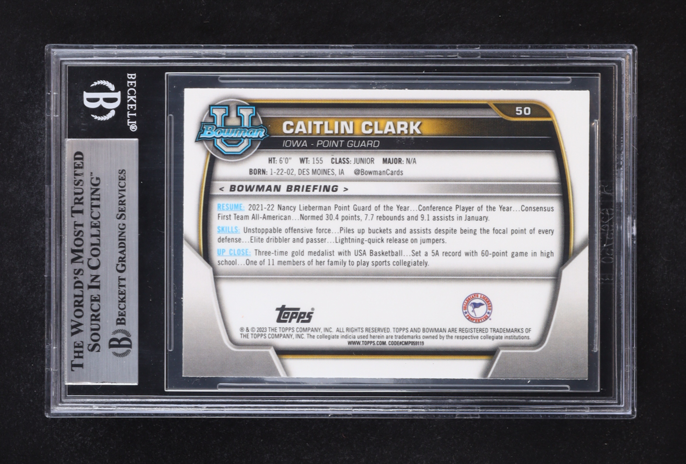 Caitlin Clark 2022-23 Bowman Chrome University #50 RC (BGS 7)