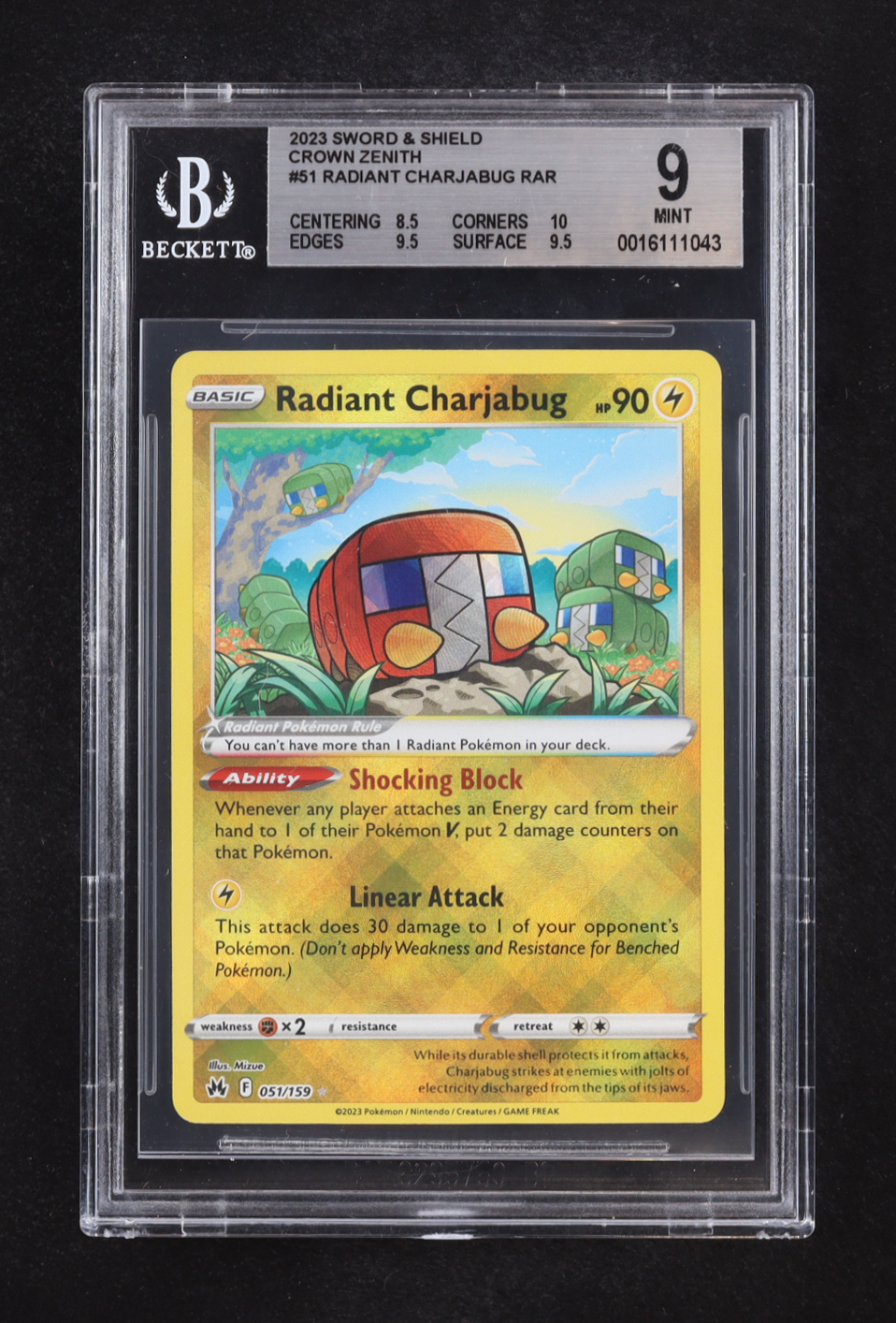 Radiant Charjabug RAR 2023 Pokemon Sword and Shield Crown Zenith #051 (BGS 9)