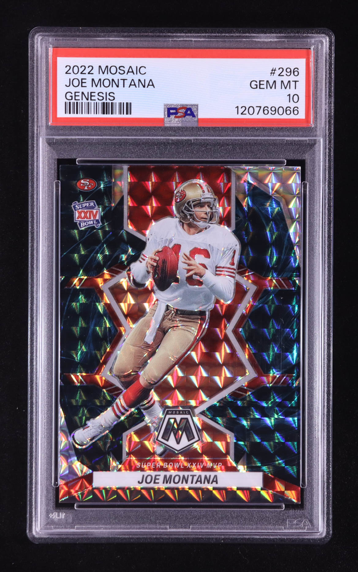 Joe Montana 2022 Panini Mosaic Mosaic Genesis #296 MVP (PSA 10)