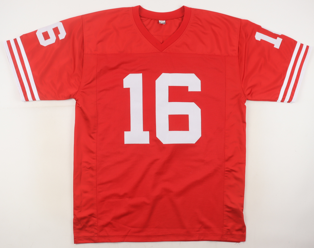 Custom jersey with everything sewn on, size XL. Hand-signed and inscribed by Joe Montana (HOF).