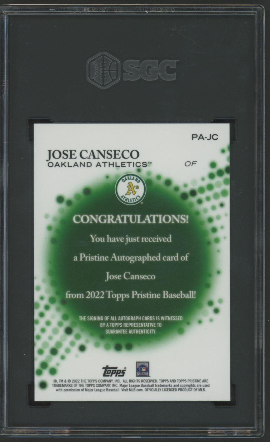 Jose Canseco 2022 Topps Pristine Autograph #PAJC (SGC 10)