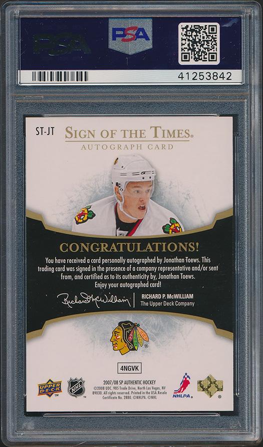 Jonathan Toews 2007-08 SP Authentic Sign of the Times #STJT (PSA 10)