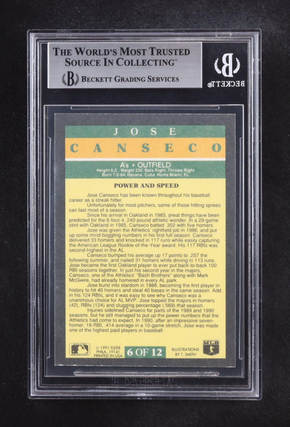 Jose Canseco Signed 1991 Fleer Pro-Visions #6 (BGS)