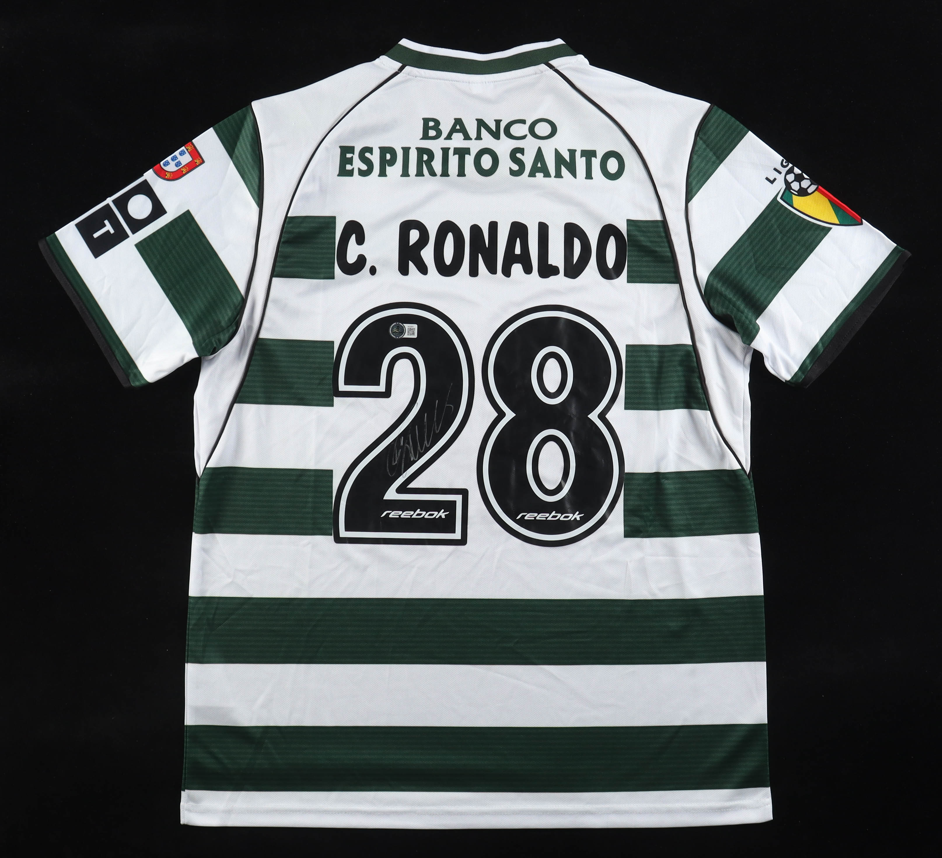 Reebok authentic jersey with everything pressed on, size L. Hand-signed by Cristiano Ronaldo.