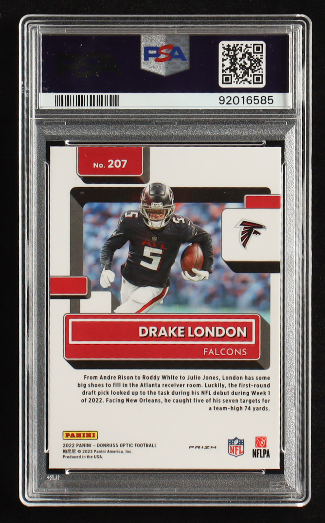 Drake London 2022 Donruss Optic Purple Shock #207 RR (PSA 10)
