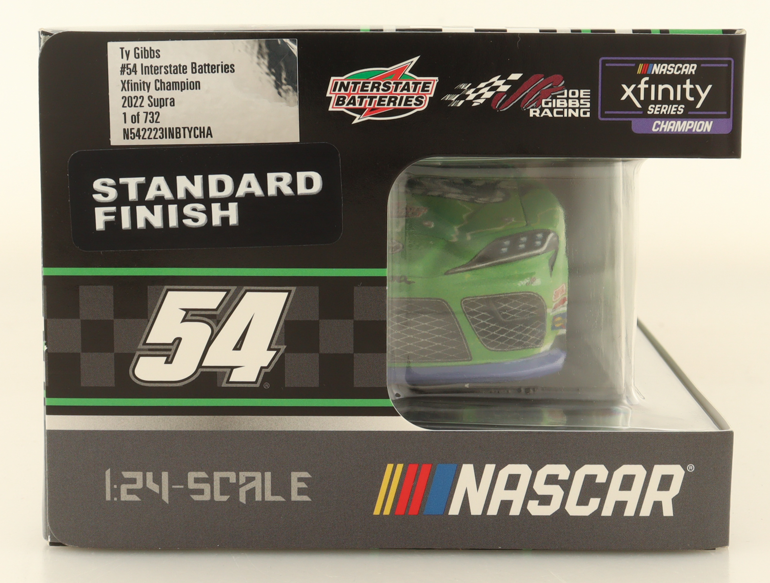 The #54 Interstate Batteries (Xfinity Champion) 2022 Toyota Supra is a limited edition to just 732 produced and includes the original packaging.